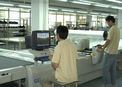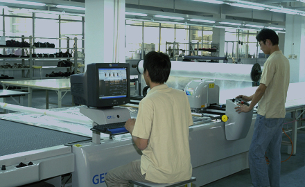 公司采用CAD計(jì)算機(jī)輔助排料系統(tǒng)進(jìn)行排料,該系統(tǒng)準(zhǔn)確、高效。鋪料機(jī)代替手工鋪料的優(yōu)點(diǎn)使鋪料均勻、整齊、松緊適宜、降低工人勞動強(qiáng)度。